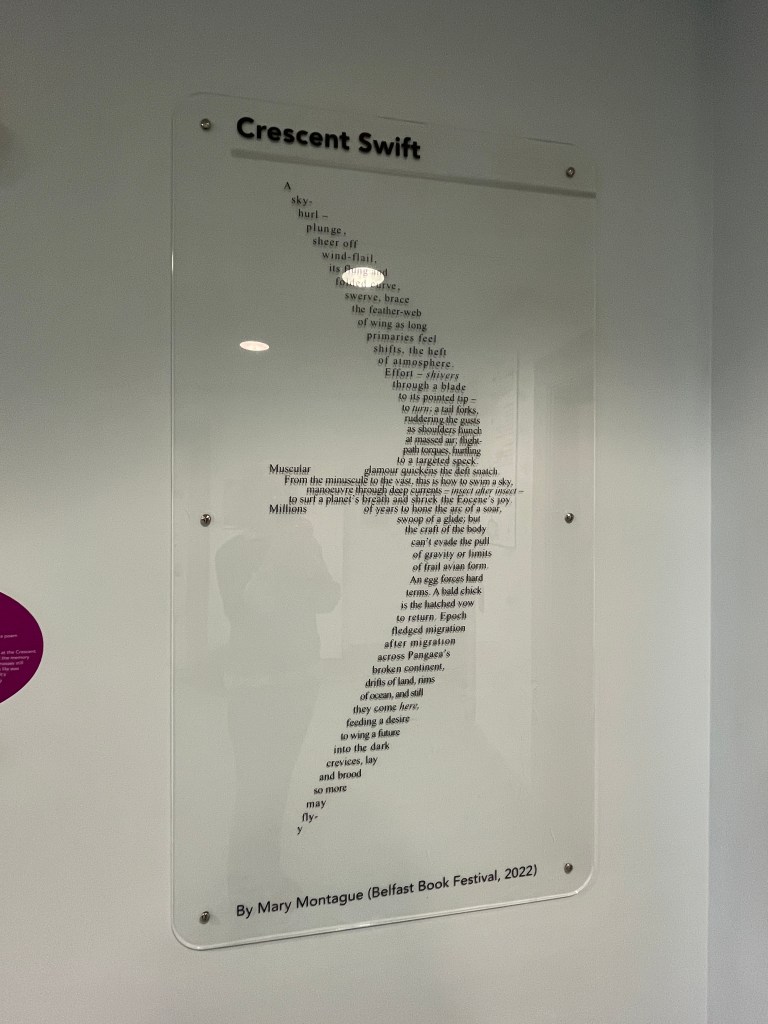 Last spring, I was delighted to be offered the chance to participate in the Belfast Book Festival at the Crescent Arts Centre in Belfast. I was invited to be in conversation with Sarah Gibson, author of the marvellous book of Swifts and Us (a wonderful compendium of biology, history, culture and travelogue).