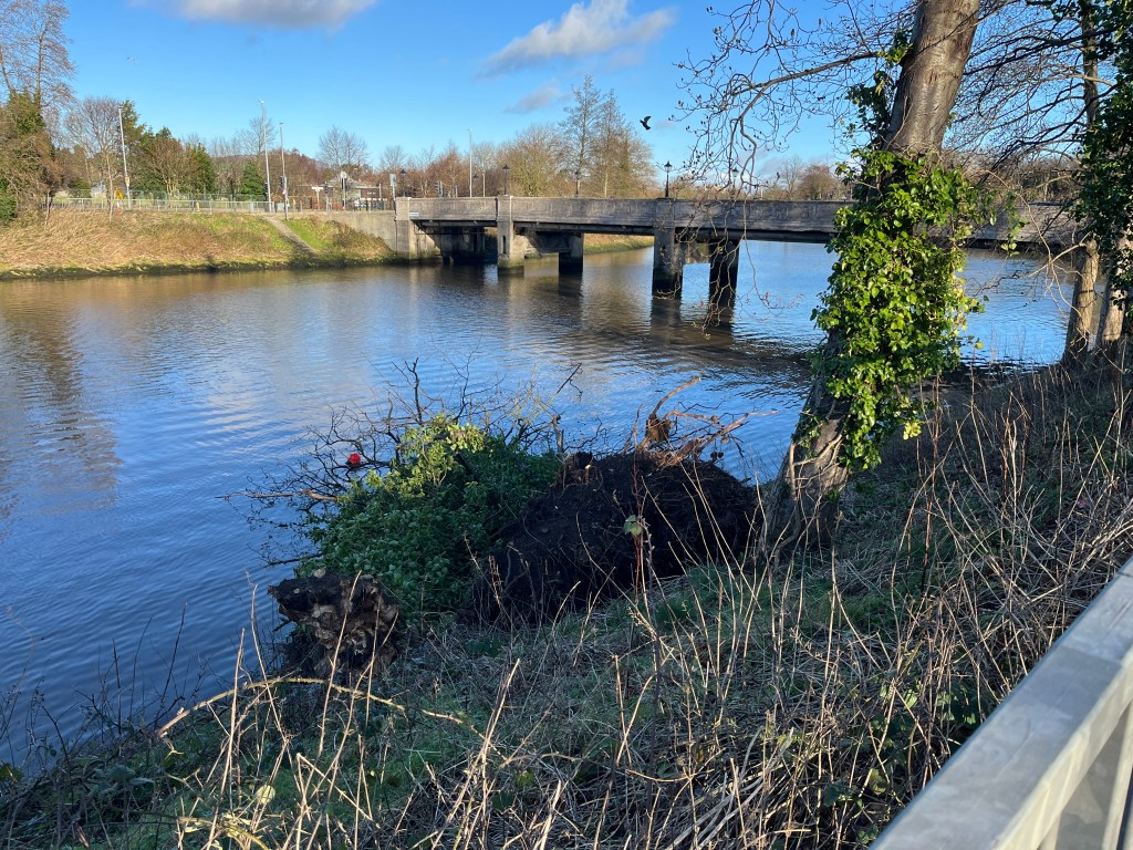Anyway, a day confined to quarters meant I was desperate to get out yesterday morning’s bright sunshine and crisp frost. On the way to the river, there were already several trees down, and the air was full of the smell of sap and the dust of cut wood. At the main junction just before the river, the clean-up was in full swing – the racket of chain-saws sliced through the traffic noise, and wood was piled at the side of the road.
